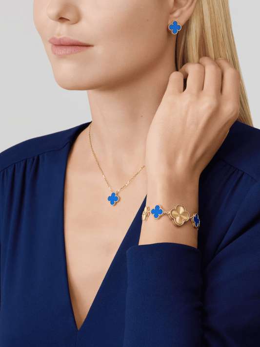 FLORAL CLOVER NECKLACE 10 MOTIFS - BLUE